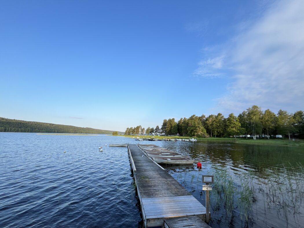 Här finns också fem stycken stugor med komplett kök, två sovrum, dusch, wc och terrass mot sjön.