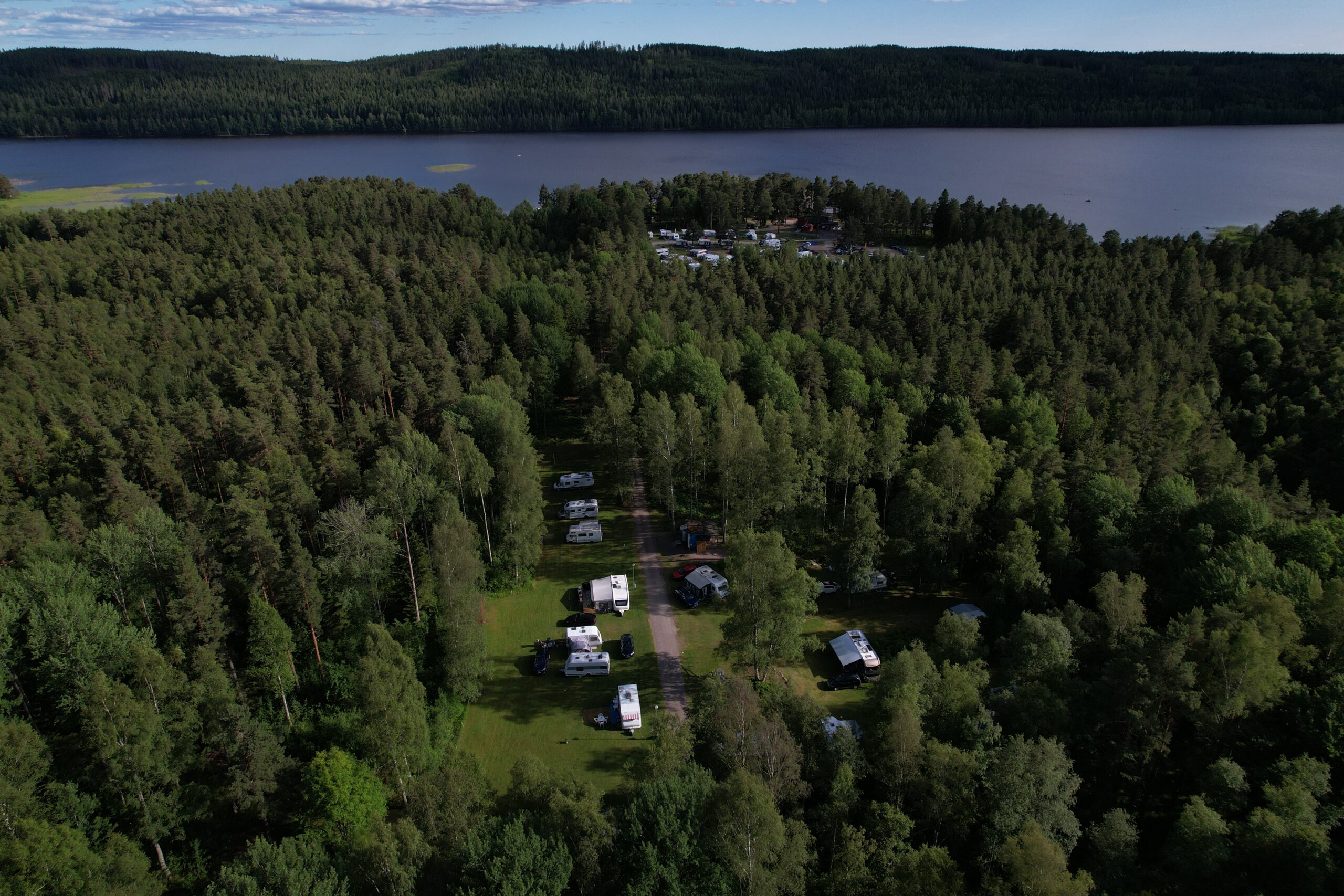 Det finns 80 campingplatser varav 50 är säsongs tomter. Av dessa 50 säsongsplatser finns det 14 platser som ligger i skogsmiljö.